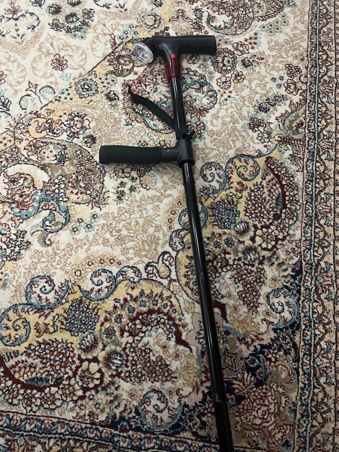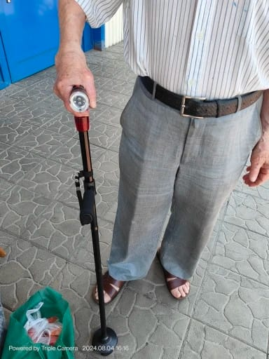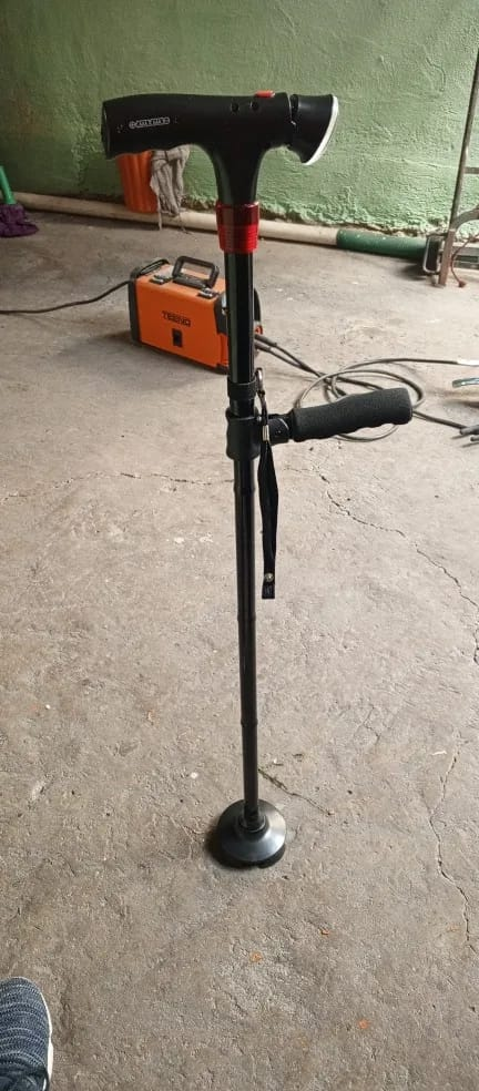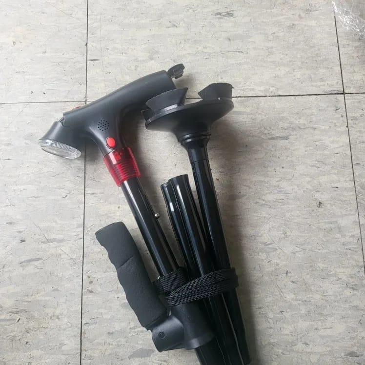 This walking stick is very useful for a disabled person. You can get up from a chair easily. It stands up and is adjustable according to the height of a person. At night, you can light up in front of you to go to the toilet. And if you fall, you can make the blush go to alert. Wonderful.