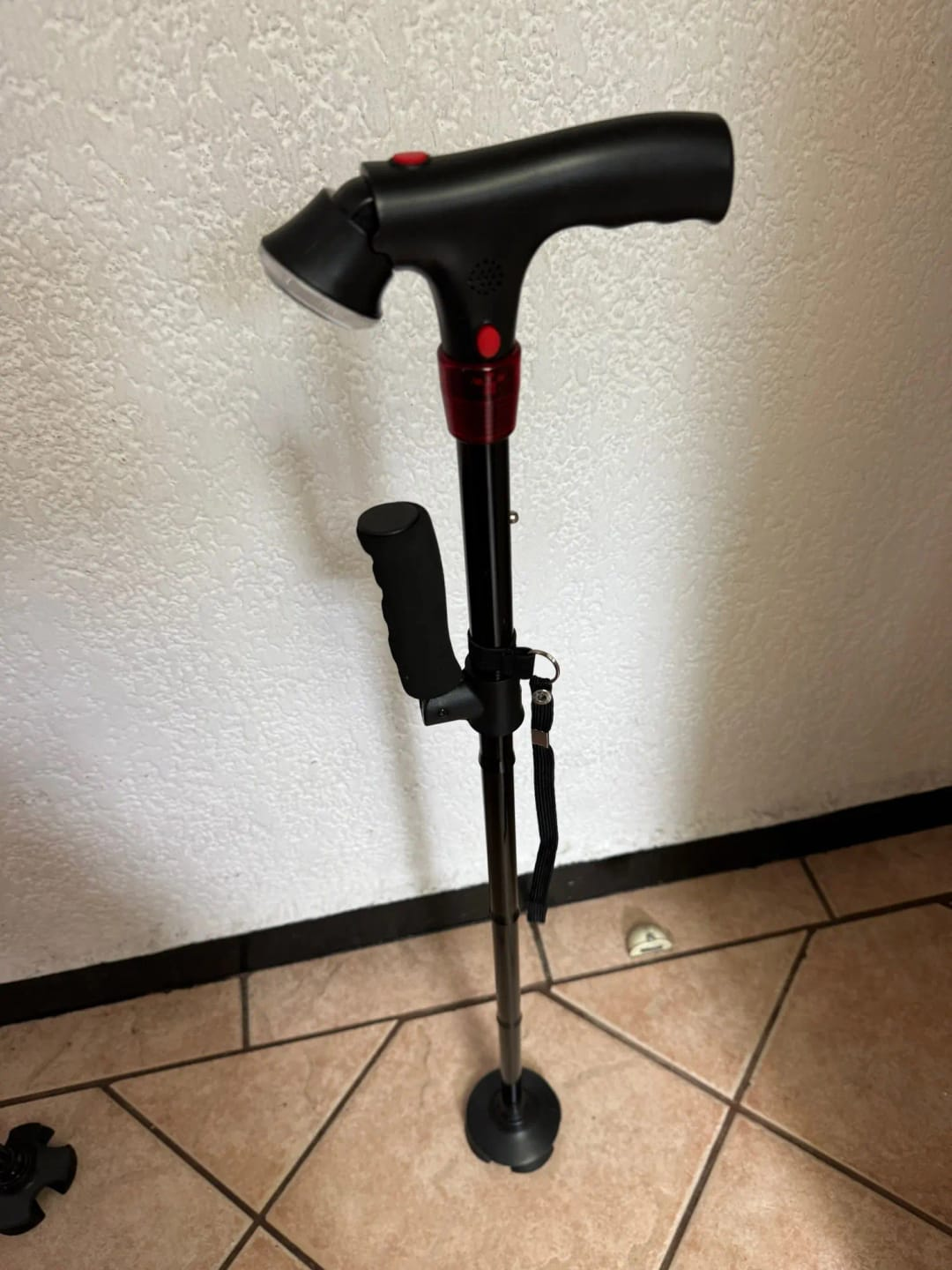 Super cane for me essential because handicap it will hold well with the suction cup light alarm in the cas of a superb fall I am really in love for the walk allows it to fold so as not to burden and very solid 2 very practical handle for resting leg thank you🙏